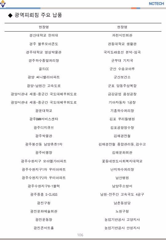 광역피뢰침 주요 납품